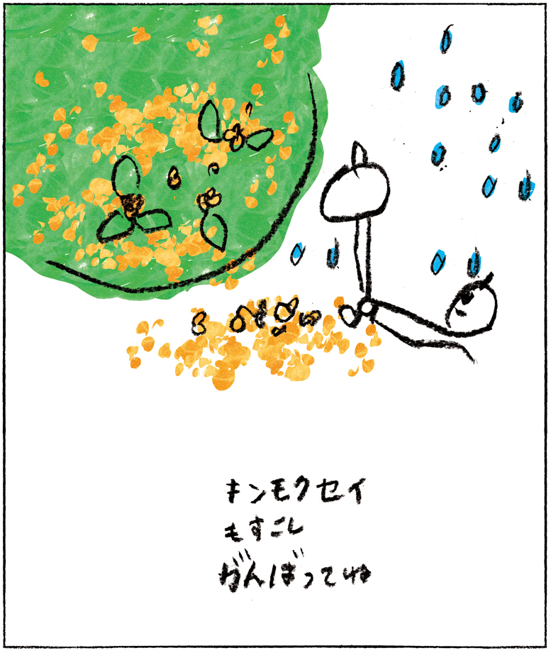 キンモクセイがもりもり咲き始めて ああ、やっと季節が変わっていくと あらためて感じている。 もう少し一緒にいたいの。 だから雨、たくさん降らないでね。