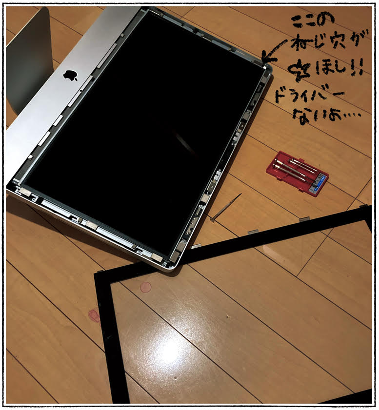 使えなくなってしまったiMac。 せめて脳HDDを保管したかったのですが 中のネジ穴に合うドライバーがなーーーーーい。 しょうがないのでこのままAppleリサイクルへいくのでした。 寒さましましの週末。 どうか皆さまくれぐれもご自愛ください。