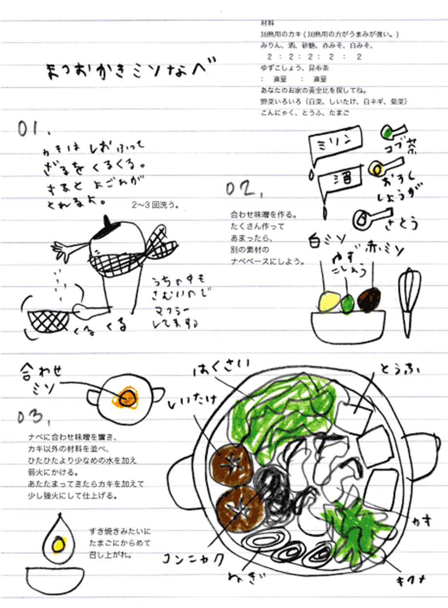 広告、企業キャラクター、CI、書籍の装丁、映画や料理のコラム連載、レシピ本も出版。