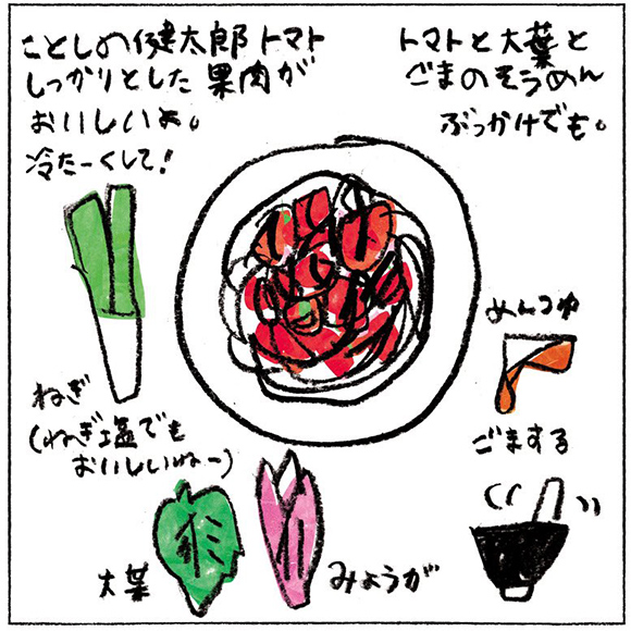 めんつゆで食べてもいいし、ねぎを塩でしんなりさせてネギ塩トマトそうめんも好きなんだよね。