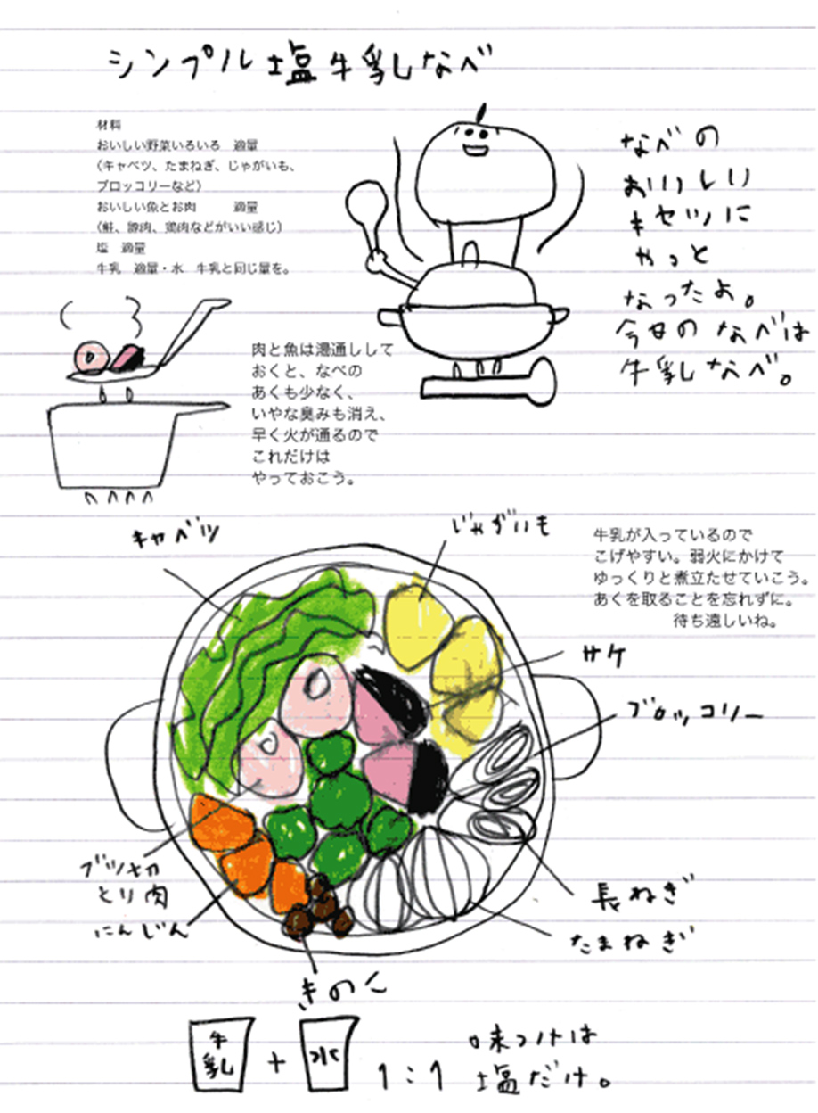 広告、企業キャラクター、CI、書籍の装丁、映画や料理のコラム連載、レシピ本も出版。